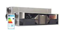 Artikelbeschreibung: Systemanschluss 4 x NW125 seitlich, waagrechte und senkrechte Montage; Kapazität: 125 m3/h bei 100 Pa (L 1.465 x B 320 x H 360 mm).